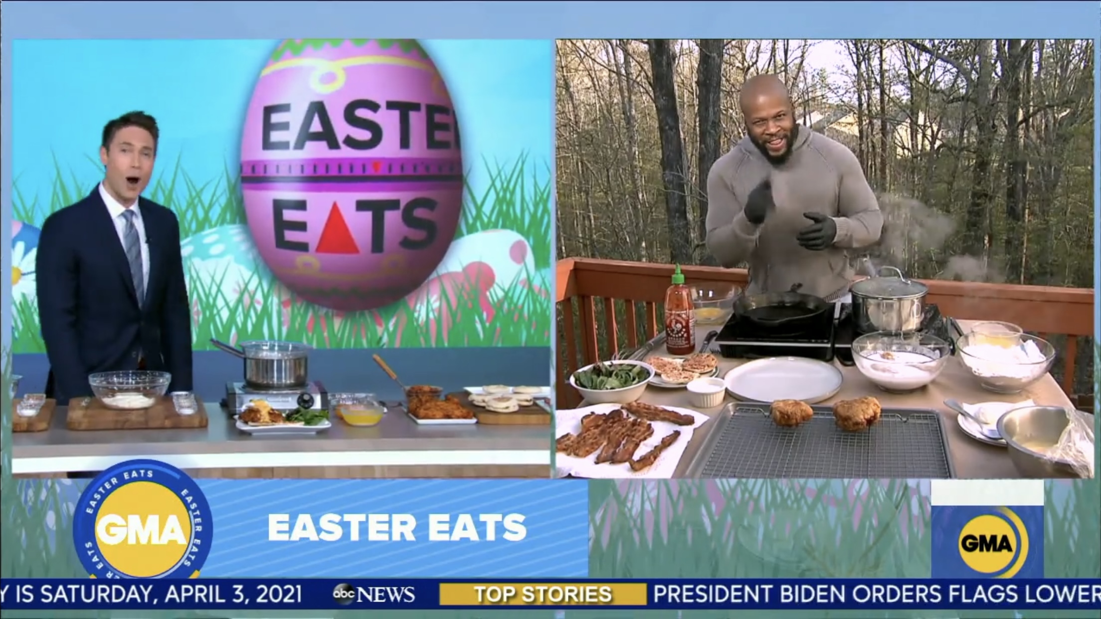 Easter Sunday Brunch, just got a lot more tasty!! On Good Morning America with Chef David’s Fried Chicken Benedict with Sriracha Hollandaise... Let the church say: Amen!!